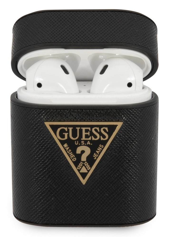 Pevné puzdro Guess Saffiano Apple Airpods, čierne