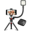 Univerzální set obsahuje tripod s vestavěným standardním 1/4"" závitem včetně flexibilního ramene a LED svítidlem, vhodným pro vlogování a pořizování snímků doma nebo na cestách. Na tripod je možné připevnit videoprojektor, kameru, fotoaparát, stabilizátor nebo držák pro mobilní telefon, který je součástí balení. Všechna tato zařízení musejí podporovat 1/4"" závit.
