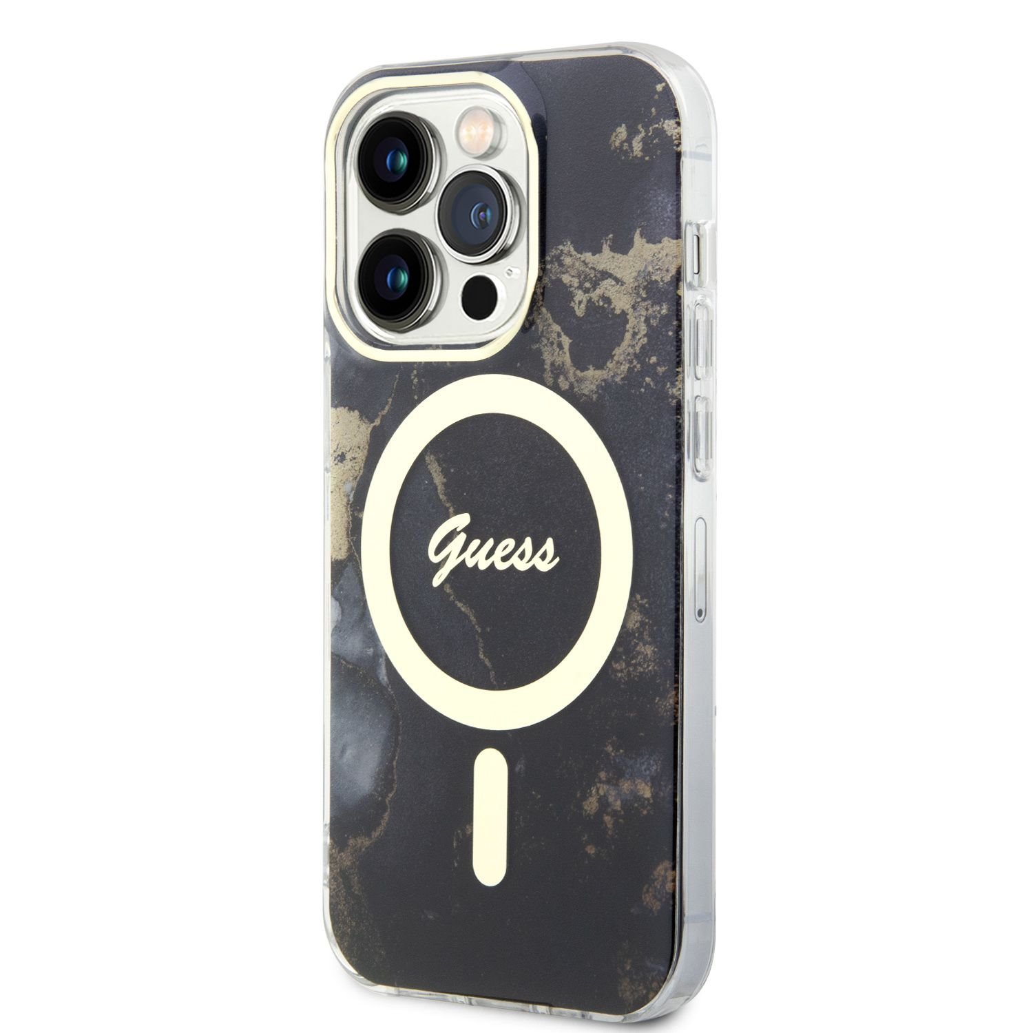 Guess Golden Marble MagSafe - pouzdro pro iPhone 14 Pro (černé)
