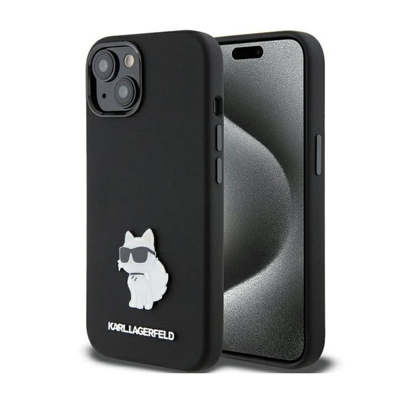 Karl Lagerfeld Silicone Choupette Metal Pin - pouzdro pro iPhone 15 Plus (černé)