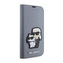 Karl Lagerfeld Booktype NFT Saffiano Karl & Choupette - pouzdro pro iPhone 14 Pro Max (stříbrné)