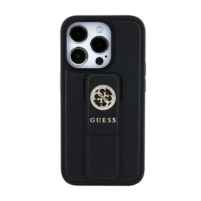 Guess Grip Stand 4G Saffiano Strass Logo - pouzdro pro iPhone 15 (černé)