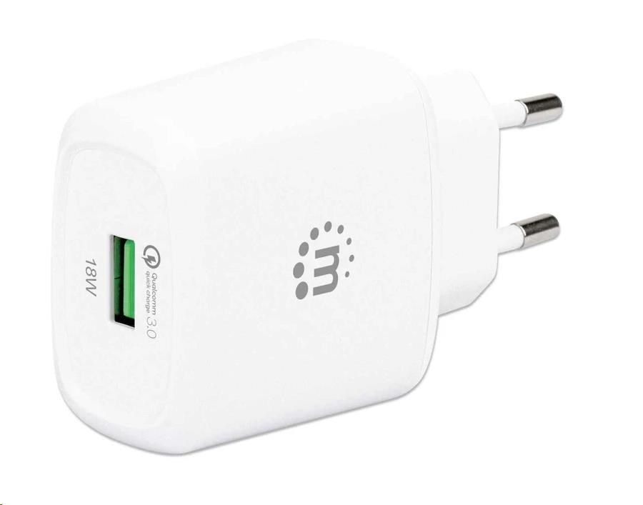 MANHATTAN USB-A nabíječka QC 3.0 Wall Charger - 18 W, USB-A Quick Charge™ 3.0 Port up to 18 W, Europlug, bílá