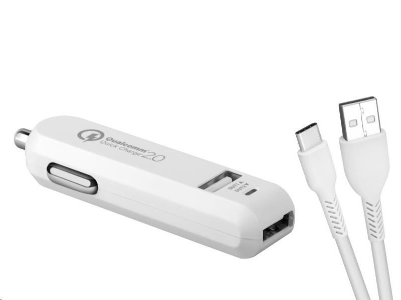 AVACOM CarMAX 2 nabíječka do auta 2x Qualcomm Quick Charge 2.0, bílá barva (USB-C kabel)
