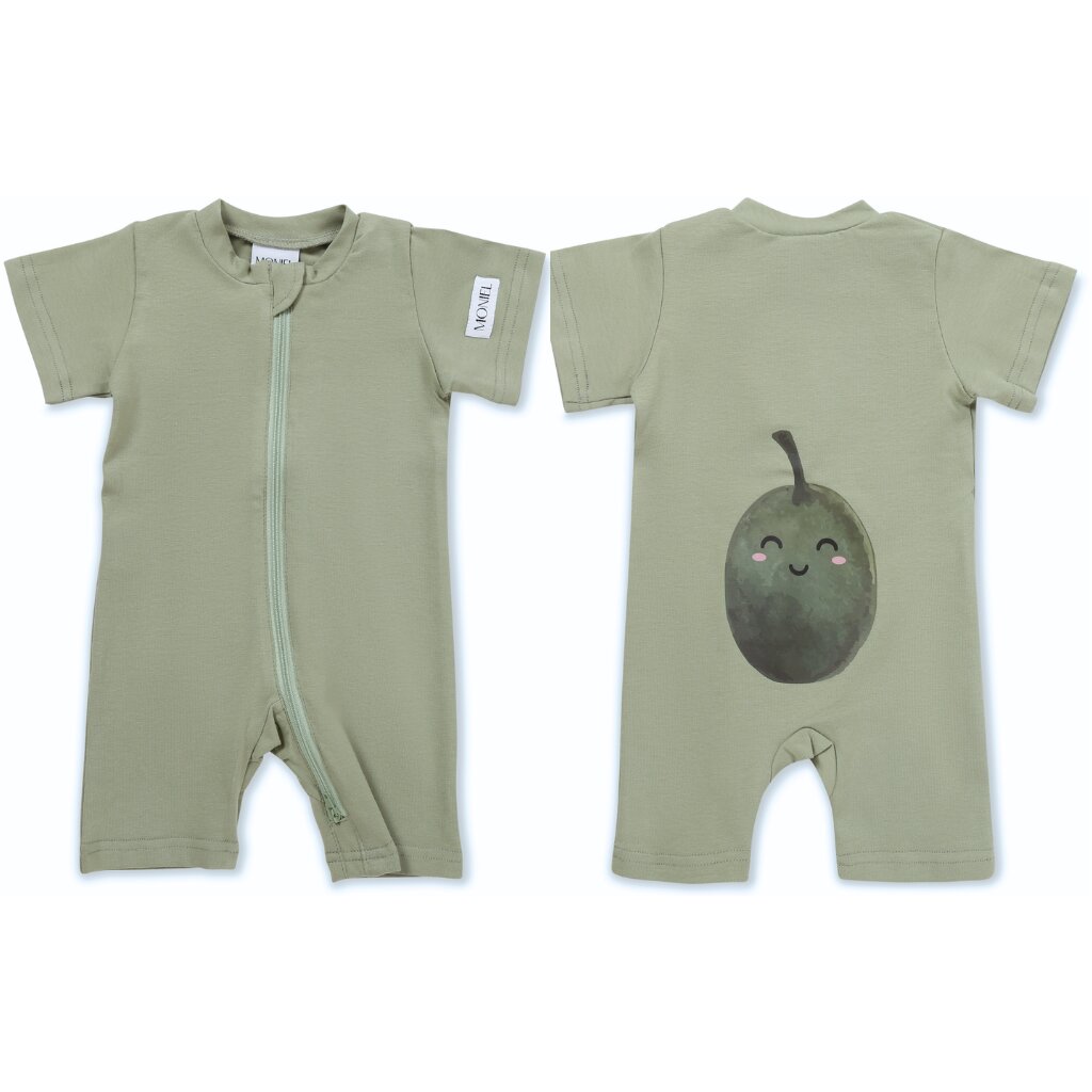 Dětský letní overal na zip s krátkým rukávem Moniel Oliva Olive je ideální jarní a letní oblečení pro děti. Nosit se dá jako dětské lehké pyžamo, domácí oblečení, ale i pohodlné letní oblečení na ven. Je ušitý z přírodní bavlněné látky hebké na dotek a odolné proti častému praní. Overal je ušitý v ČR. Velikosti od narození až do 4 let.