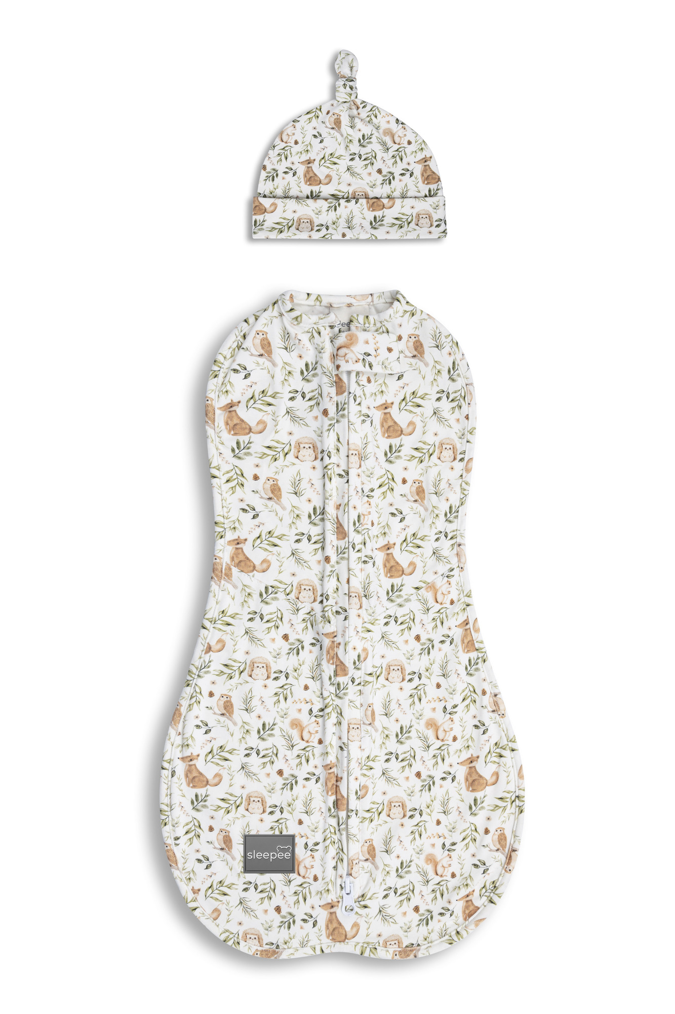 Zavinovačka Sleepee Second Step Swaddle s čepičkou zdarma Ivory Forest