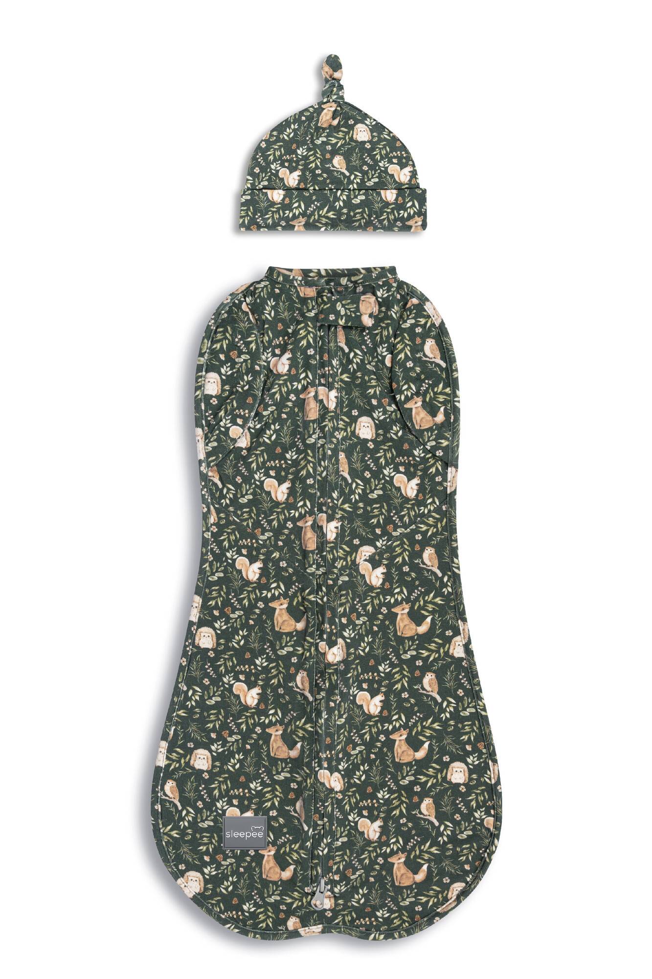 Zavinovačka Sleepee Second Step Swaddle s čepičkou zdarma Green Forest