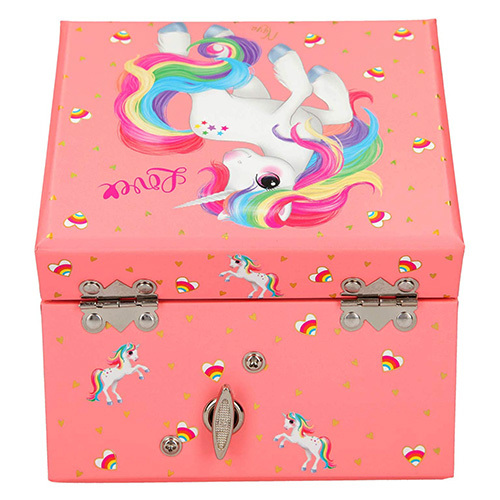 Kvalitně zpracovaná dívčí šperkovnice se zrcátkem a šuplíčkem značky Ylvi and the Minimoomis vyrobená z pevného kartonu. Šperkovnice nabízí dostatečný vnitřní prostor pro přehledné uložení všech šperků! Po otevření horního víka, Vás překvapí malý jednořožec, který se točí a hraje melodii. Strojek...