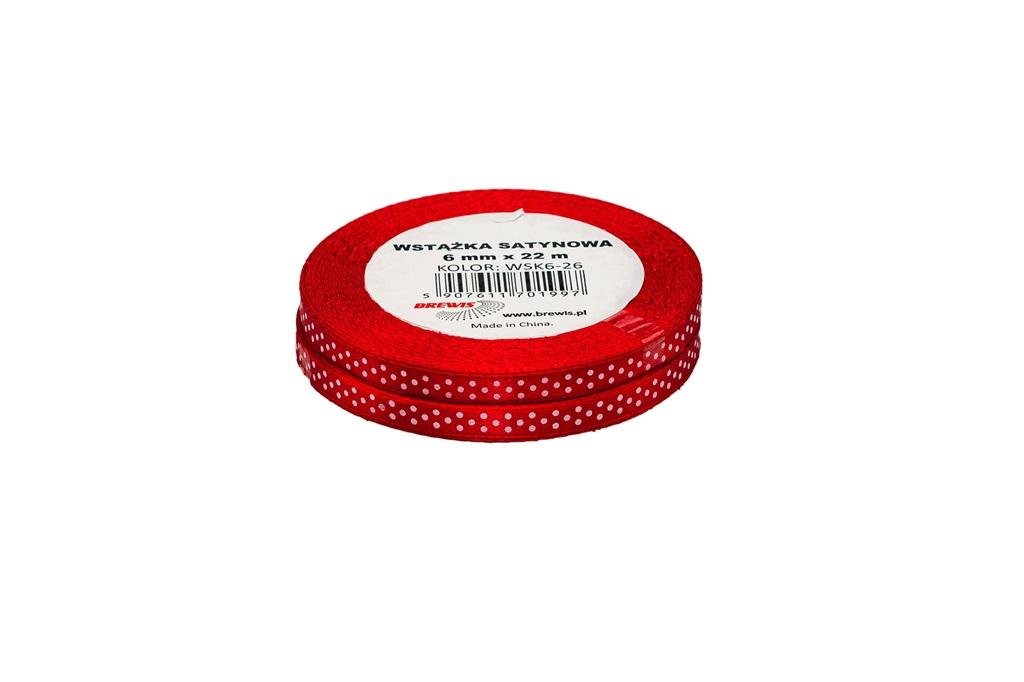 Wstążka satynowa w kropki czerwona 6mmx22m 2szt