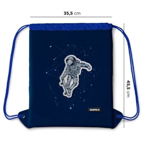 Torba z dwoma sznurkami do zawieszenia i zamknięcia. Wykonane z matowej laminowanej tkaniny. Z silikonowym wzmocnieniem na podstawie i na pierścieniach, aby zapobiec zerwaniu worka przez linę. Z wewnętrzną podszewką i wzmocnionym zamknięciem. Idealny do zabrania ze sobą wszędzie lub do noszenia odzieży sportowej. Wymiary: 455 x 355 mm.