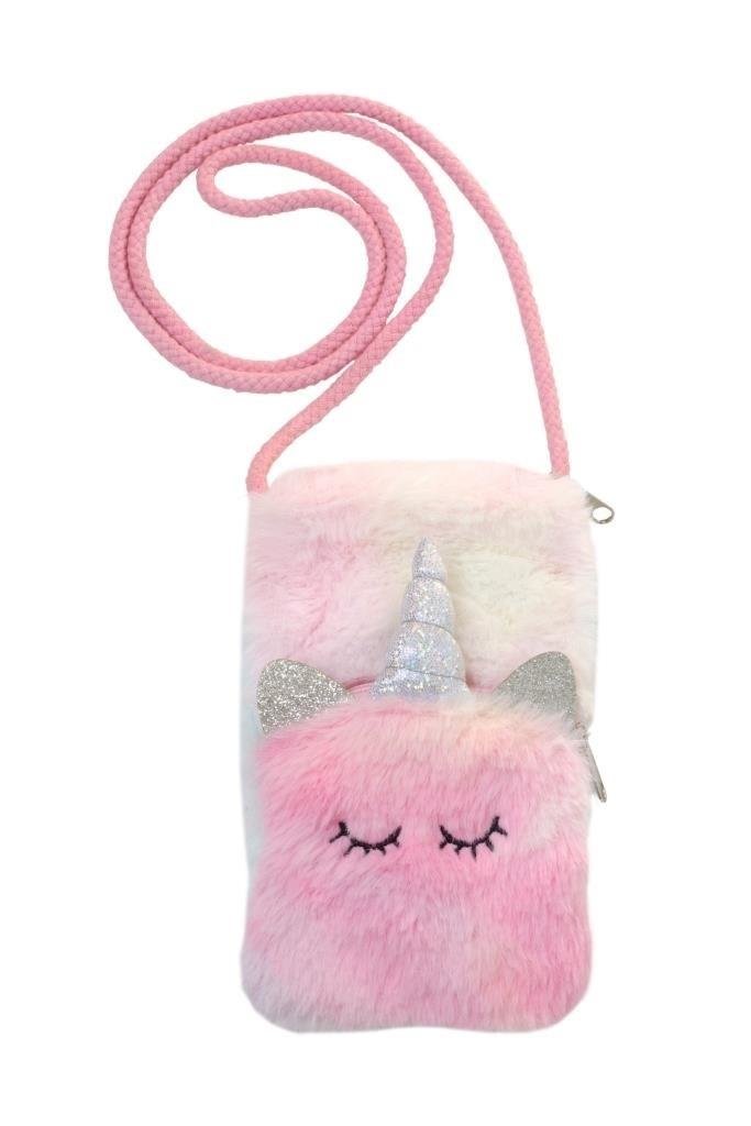 Torebka jednorożec zapinana na zamek, Dodatkowa kieszonka na drobiazgi. Wykonana z pluszowego materiału w kolorach pastelowych. prečítať celé