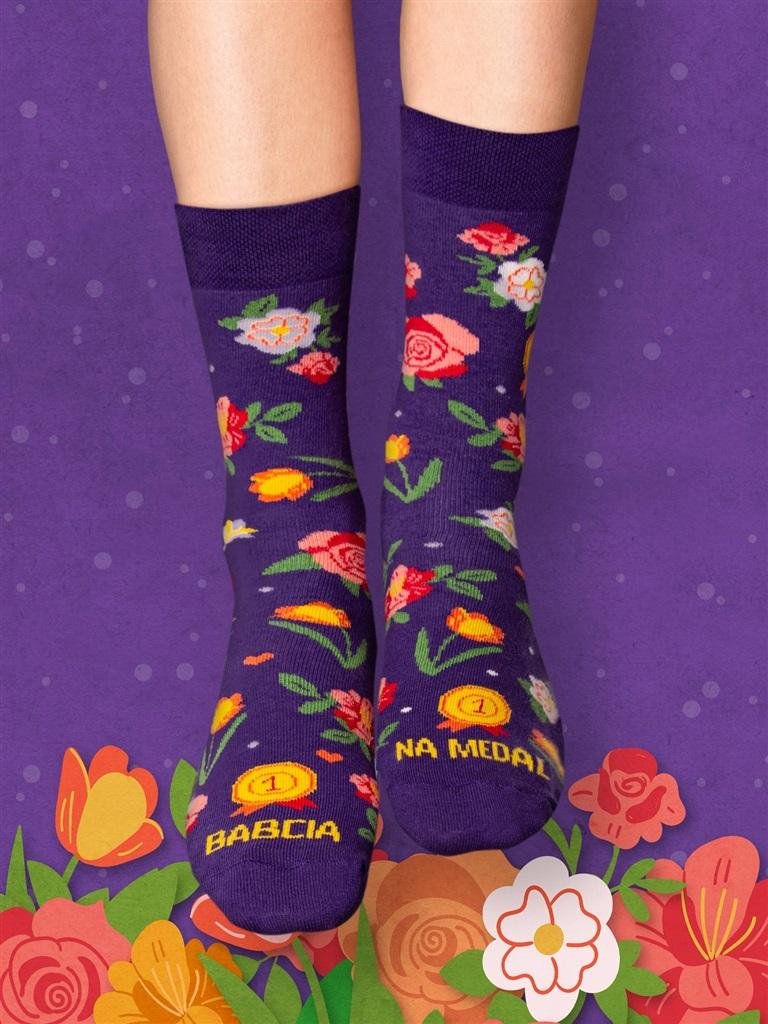 Gdzie wnuczek nie może, tam babcię pośle! Babcia, czyli jednostka do zadań specjalnych, od której nie sposób wyjść głodnym. Z tego względu zasługuje na złoty medal jak nikt inny na świecie! Albo chociaż na drobny upominek będący ukoronowaniem jej codziennych trudów. Śmieszne skarpetki BABCIA NA...