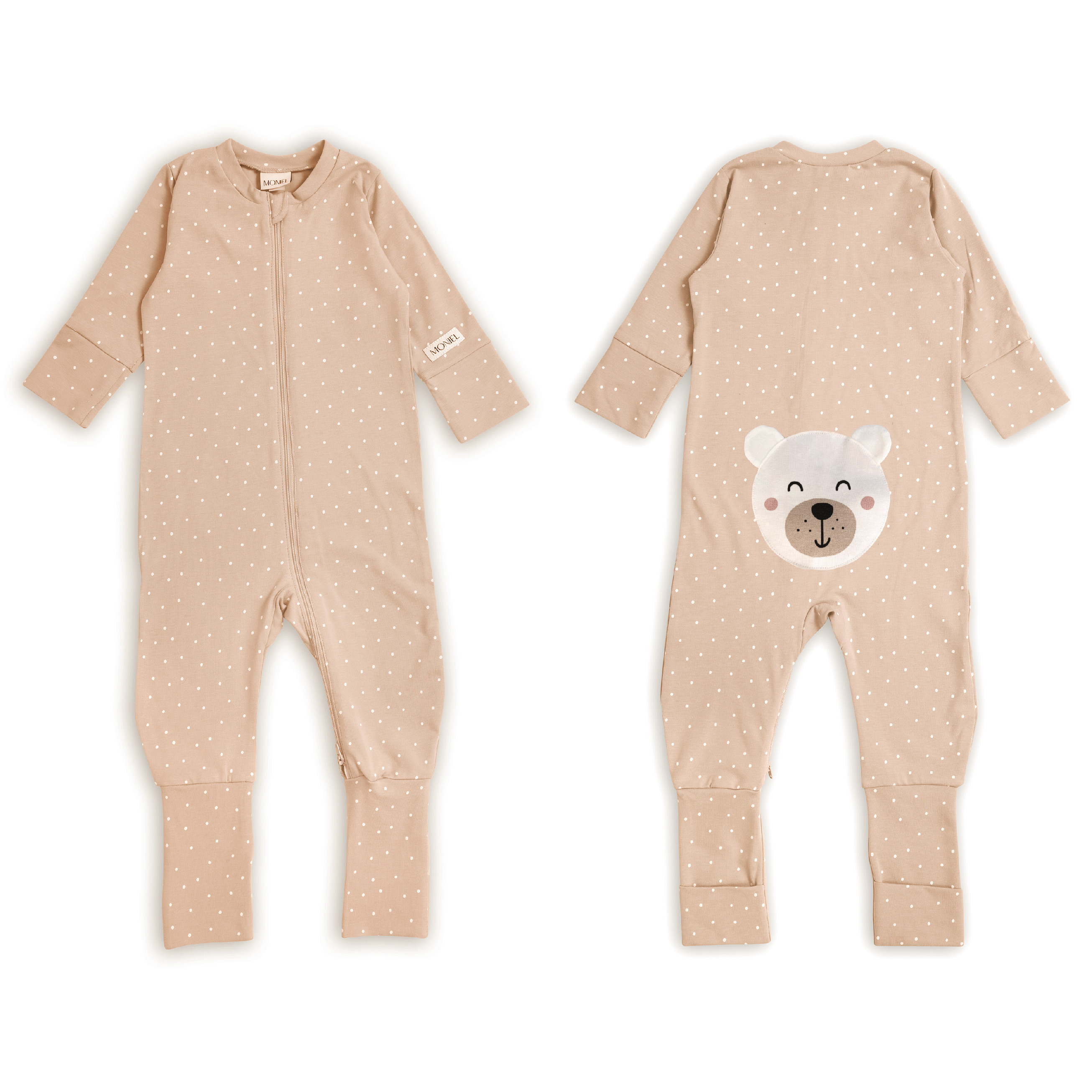 Moniel Dětský rostoucí overal Medvěd Dots béžová 74 6-9 měsíců