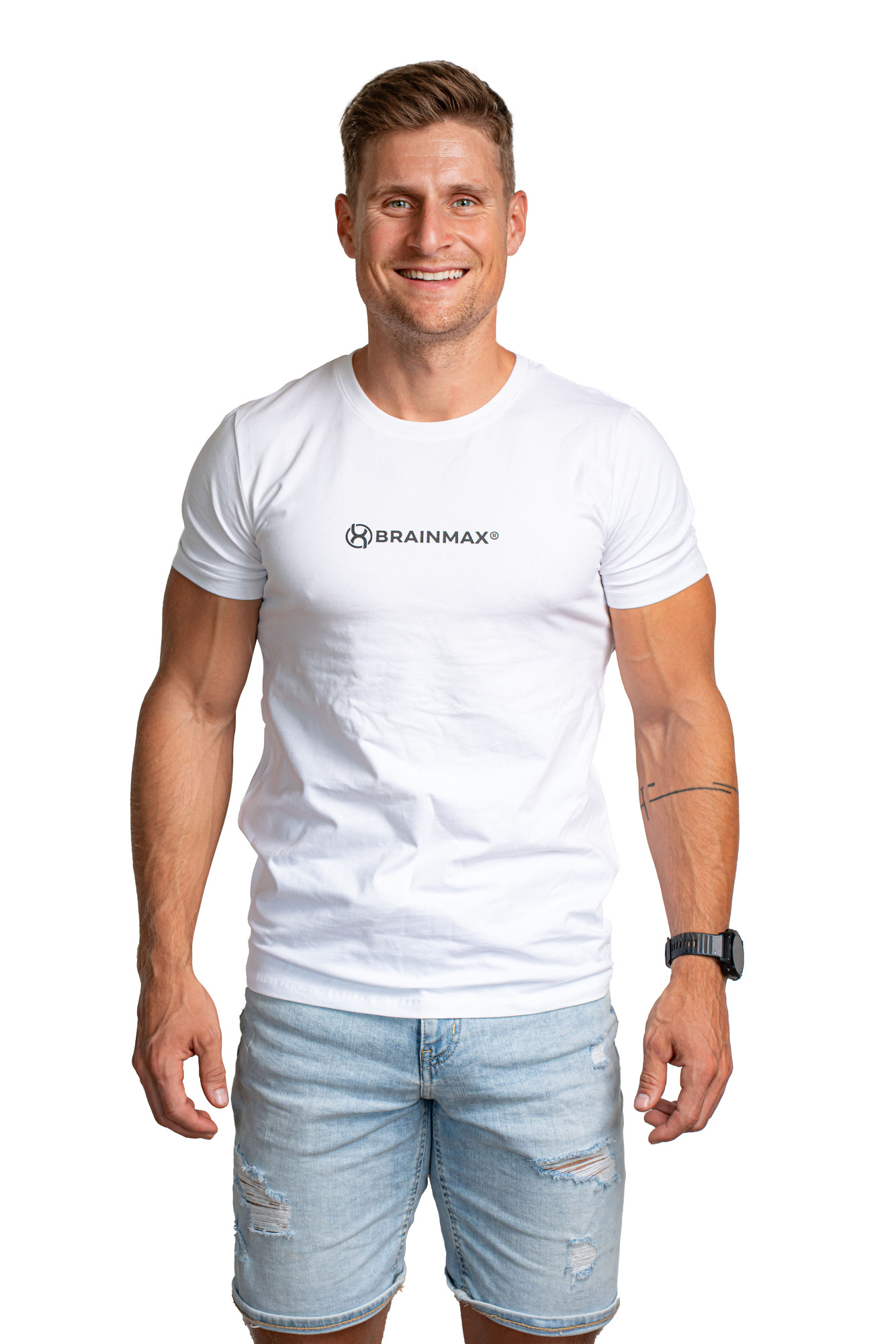 Skvělé padnoucí tričko černé barvy s logem BrainMax na hrudi je vyrobeno z 95% bavlny a 5% elastanu. Je pohodlné, prodyšné a můžete jej použít jak do města, tak do fitka.