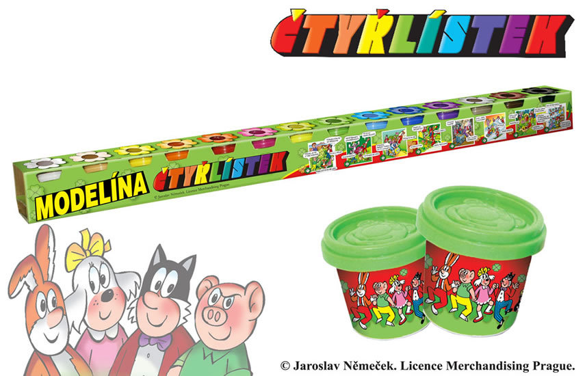 Komiksová parta Čtyřlístek nabízí - metr dlouhou sadu modelíny s krátkým komiksem Jak se učili Fifinky, Myšpulín, Bobík a Pinďa vyrábět modelínu.