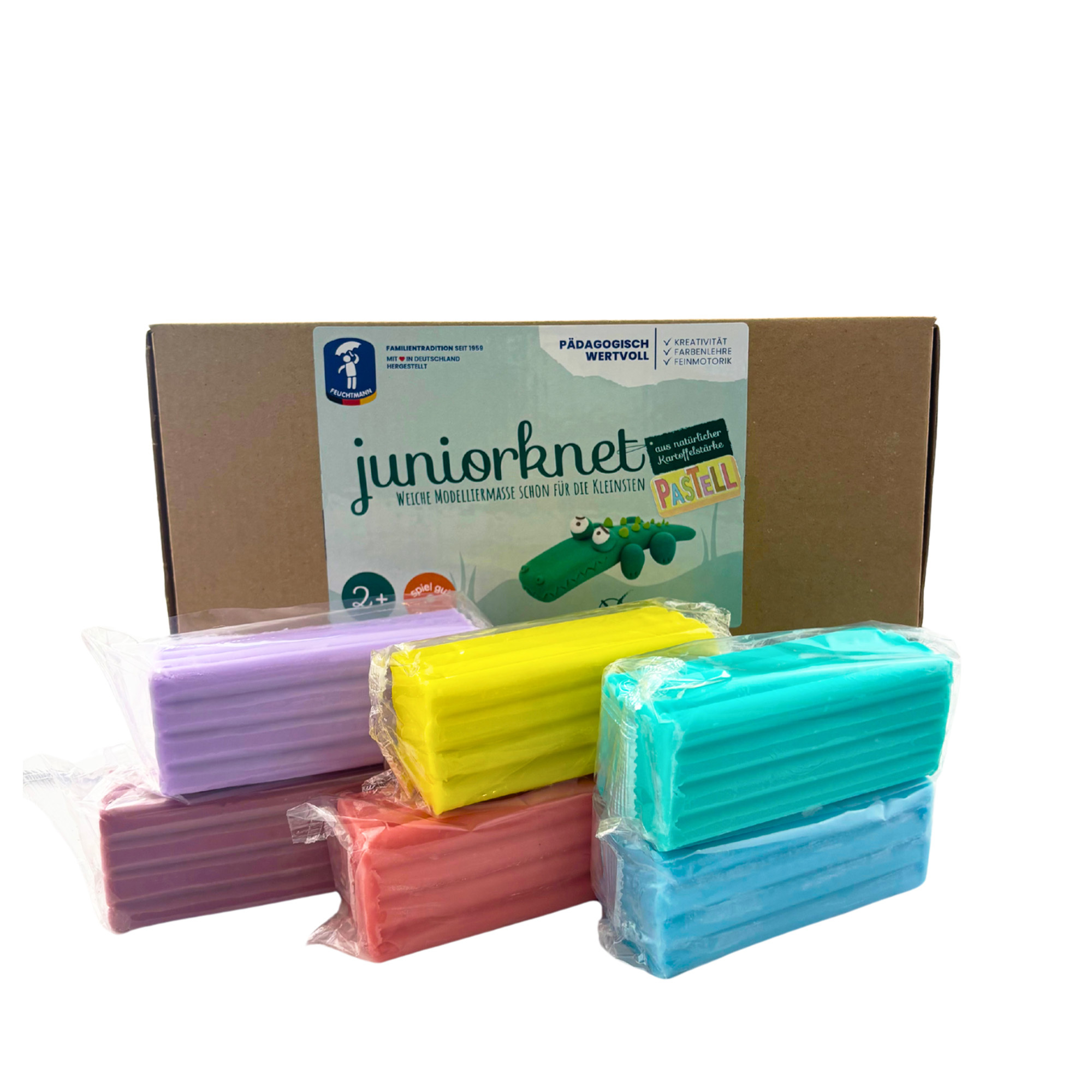 Velké balení snadno tvarovatelné netvrdnoucí modelovací hmoty JUNIORKNET v 6 pastelových barvách po 150 g je výzvou pro všechny malé umělce. Měkká hmota s hladkou strukturou je určena pro nejmenší děti, nevysychá, je zdravotně nezávadná, vhodná i pro alergiky. Děti si zamilují zářivé barvy měkké...