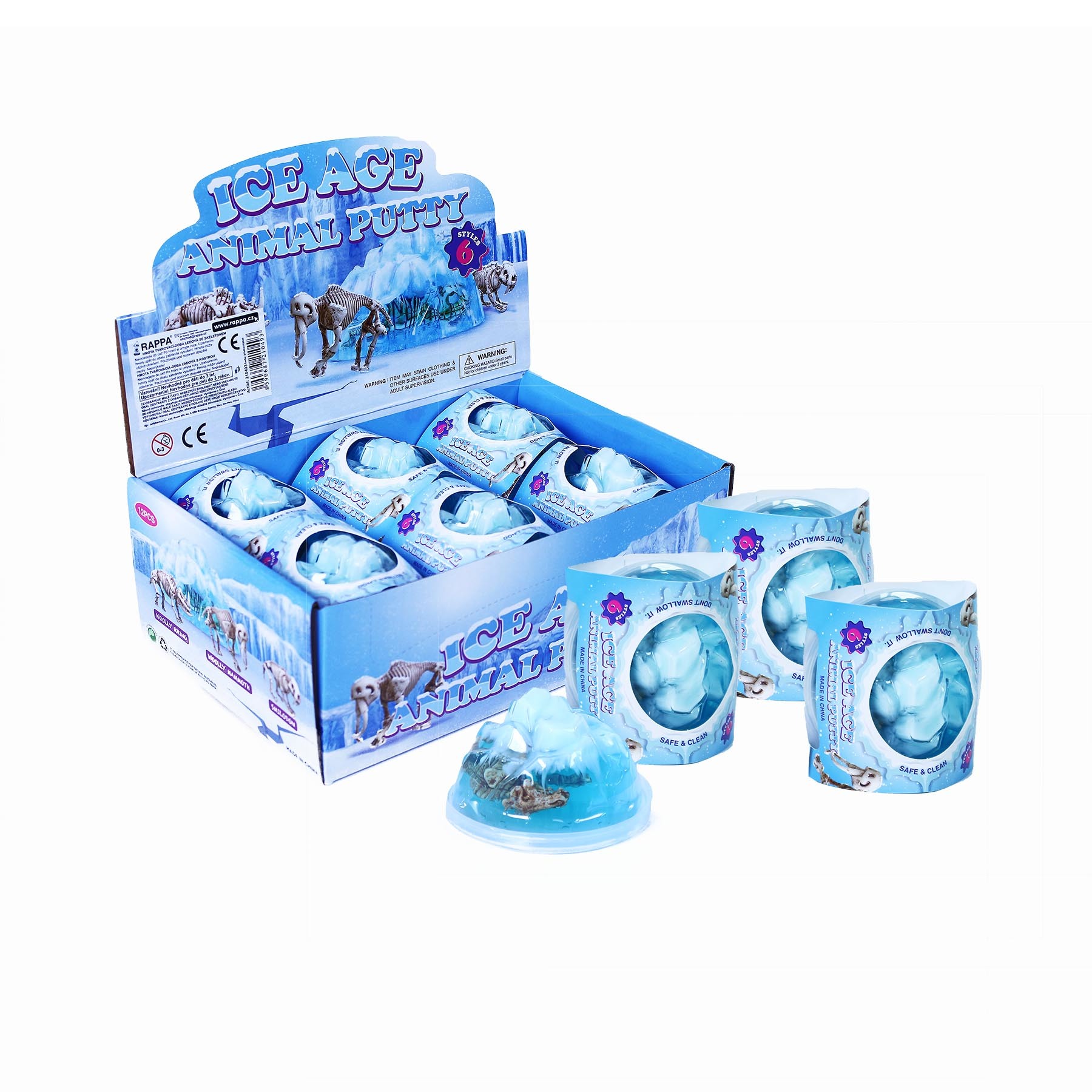 Malá pravěká kostra v ledovci s tvarovací hmotou, která se dá různě tvarovat a natahovat. Prodej pouze po celém balení 12 ks. prečítať celé