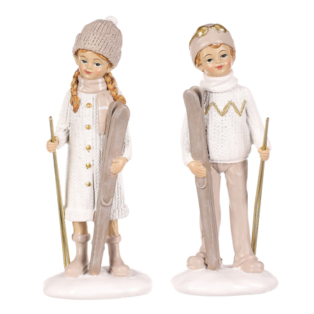 Vytvořte si zimní pohodu s našimi polyresinovými figurkami chlapce a dívky stojícími s lyžemi. Tyto roztomilé figurky představují děti, oděné v dobovém teplém oblečení ve světlých odstínech, béžových až bílých tónech. S jejich milým vzhledem a radostným postojem přinášejí do vašeho prostoru...
