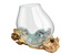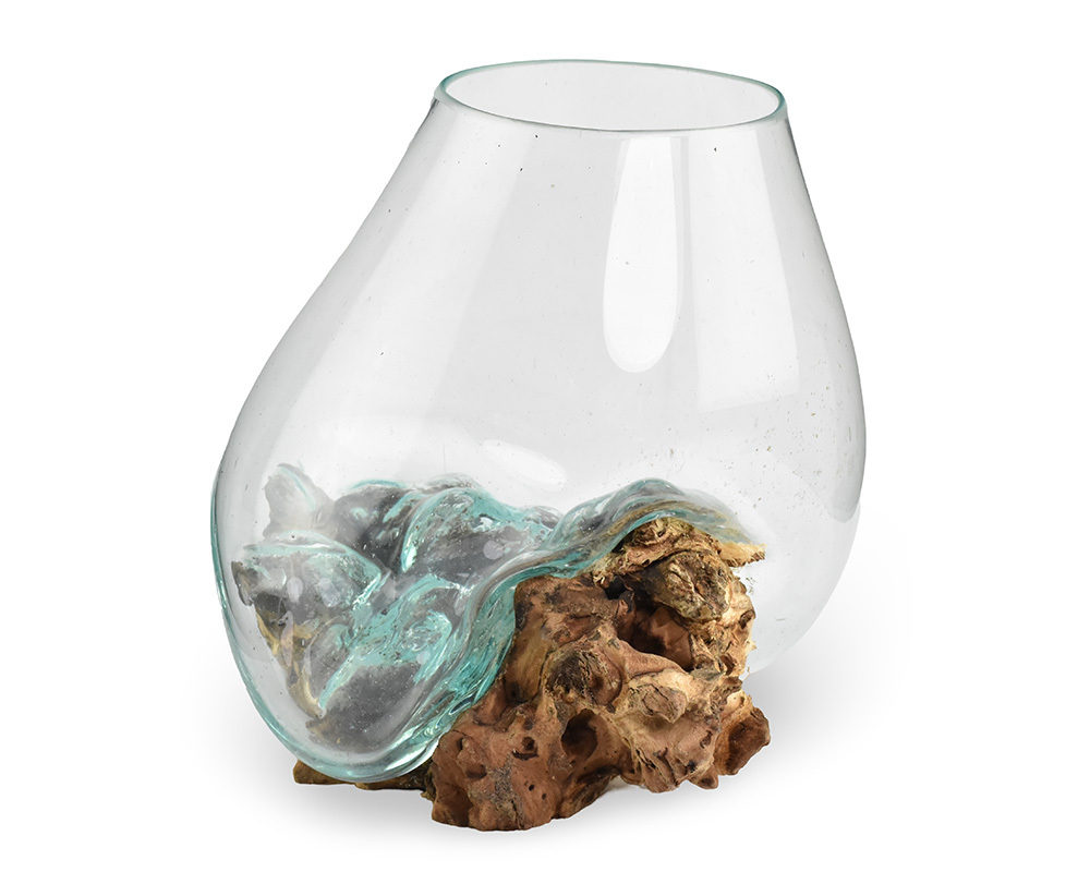 Tato skleněná nádoba spojuje tavené sklo a přírodní dřevo v praktický a estetický doplněk do interiéru. Sklo je ručně tvarované tak, aby přesně zapadlo na dřevěný podklad, což vytváří příjemný kontrast mezi chladným sklem a teplým dřevem. Každý kus je originální díky přirozené struktuře dřeva a...
