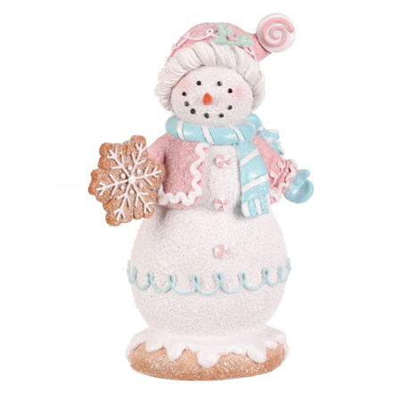 Sněhulák z polyresinu v pestrobarevném oblečku vypadá, jako by byl vytvořen z perníku a cukrové polevy. Tato roztomilá figurka přináší do vánoční výzdoby hravou a veselou atmosféru, která oživí každý kout vašeho domova. prečítať celé