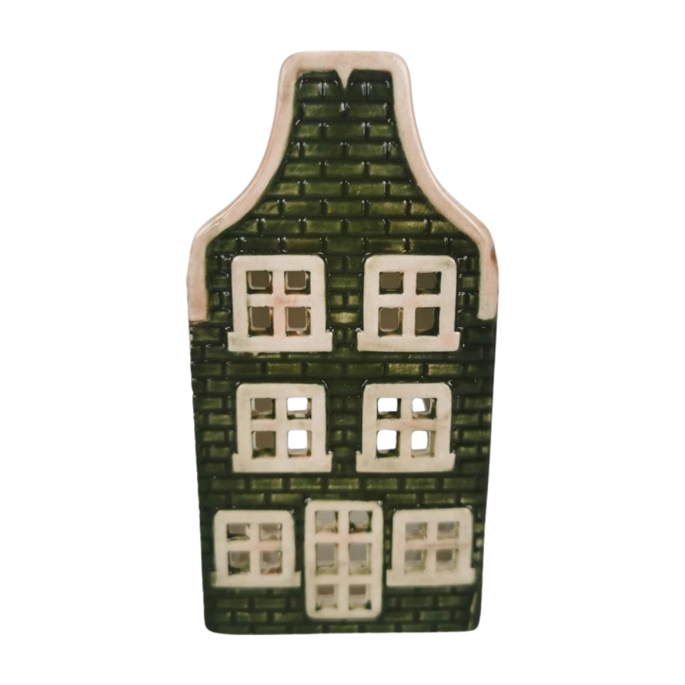 Keramický domeček na svíčku zelený, 14 cm