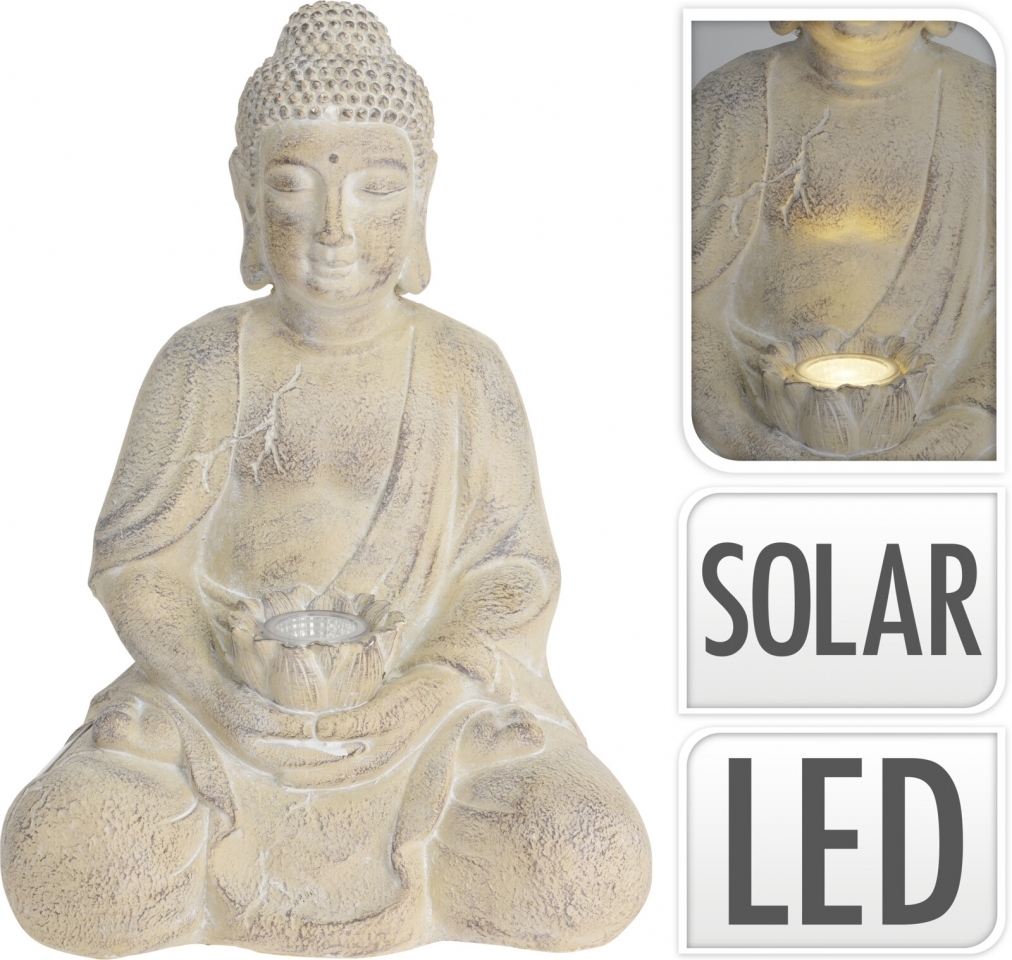 Soška Buddhy se solárním osvětlením, 44x31,5x27 cm