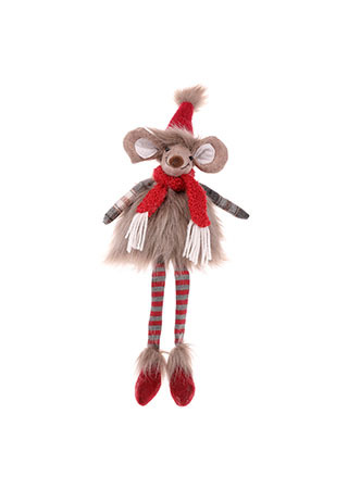 Myšák s červenou šálou a čepicí, sedící, textilní dekorace