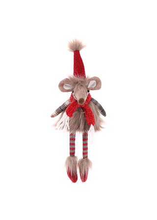Myšák s červenou šálou a čepicí, sedící, textilní dekorace