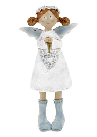 Víla s levandulovým srdcem, bílé šaty, stojící, polyresin.