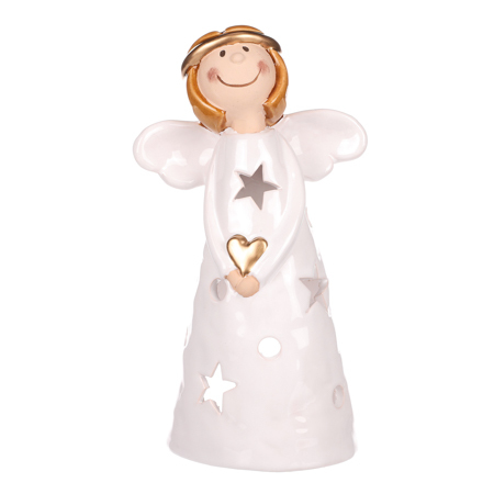 Anděl bílý držící srdce - svícen na čajovou svíčku, keramika
