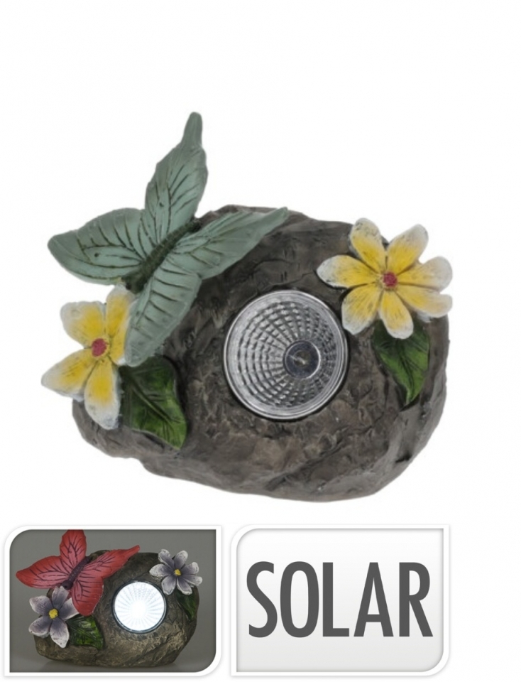 Solární kámen se zeleným motýlkem 10x11,5x5,5 cm