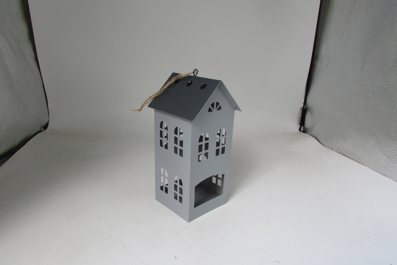 Kovový svícen domek šedý 16,5x8x7,5 cm