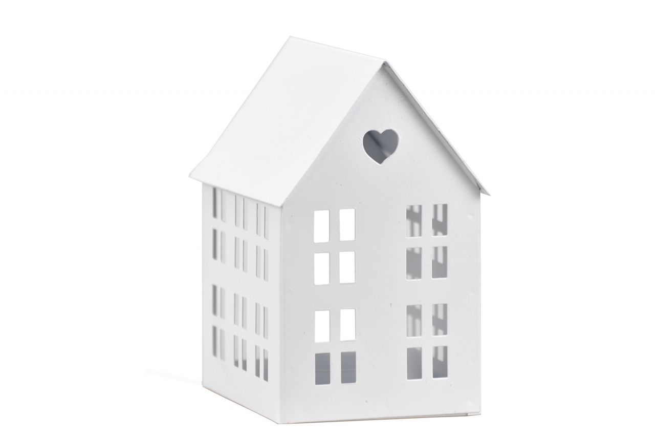 Kovový svícen domek bílý 13x10,5x8 cm