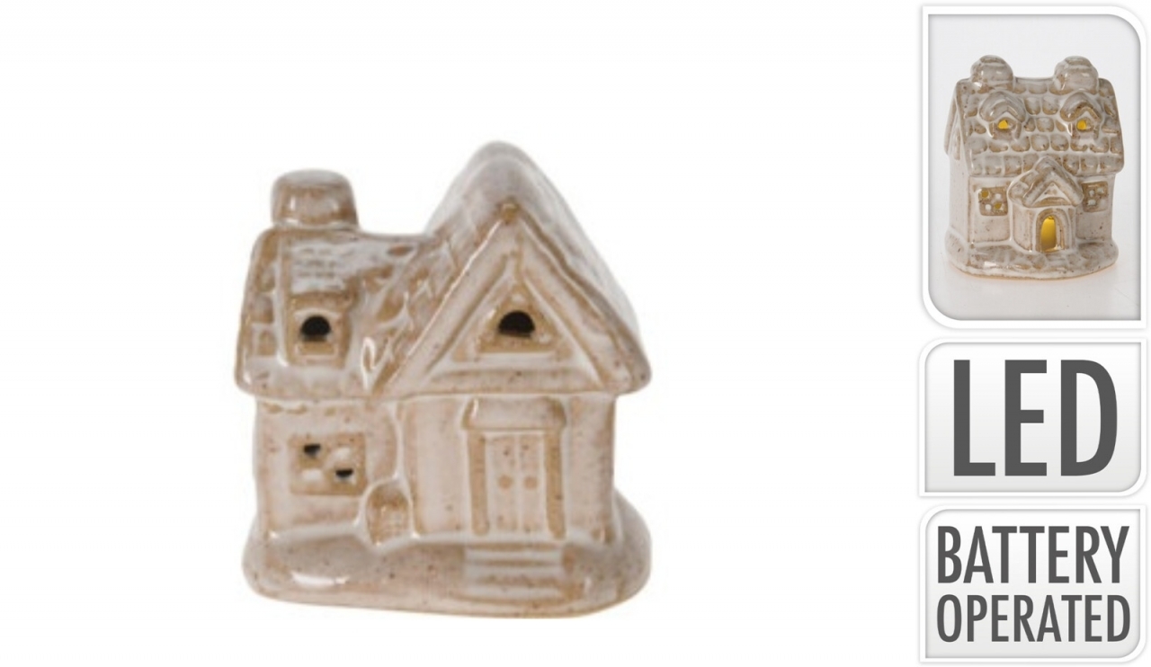 Porcelánový domeček s LED osvětlením. Napájení na 2x LR44 baterie (součástí výrobku).Materiál: porcelánRozměry:výška 9 cmšířka 8 cmhloubka 5,5 cmhmotnost 200 g prečítať celé