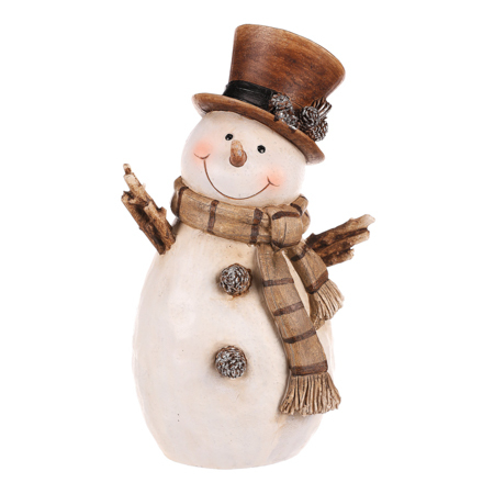 Užijte si jedinečné kouzlo zimy a vánočních svátků s touto velkou figurkou usměvavého sněhuláka. Jeho roztomilý výraz doplněný slušivou šálou a elegantním kloboukem dodá vaší výzdobě neodolatelný veselý prvek. Svým provedením a vzhledem, bude tato figurka patřit k nejoriginálnějším ozdobám ve vaší sbírce. Umístěte ji na poličku, stůl, okenní parapet nebo jiné vhodné místo, odkud bude rozdávat radost a potěšení všemi směry.
