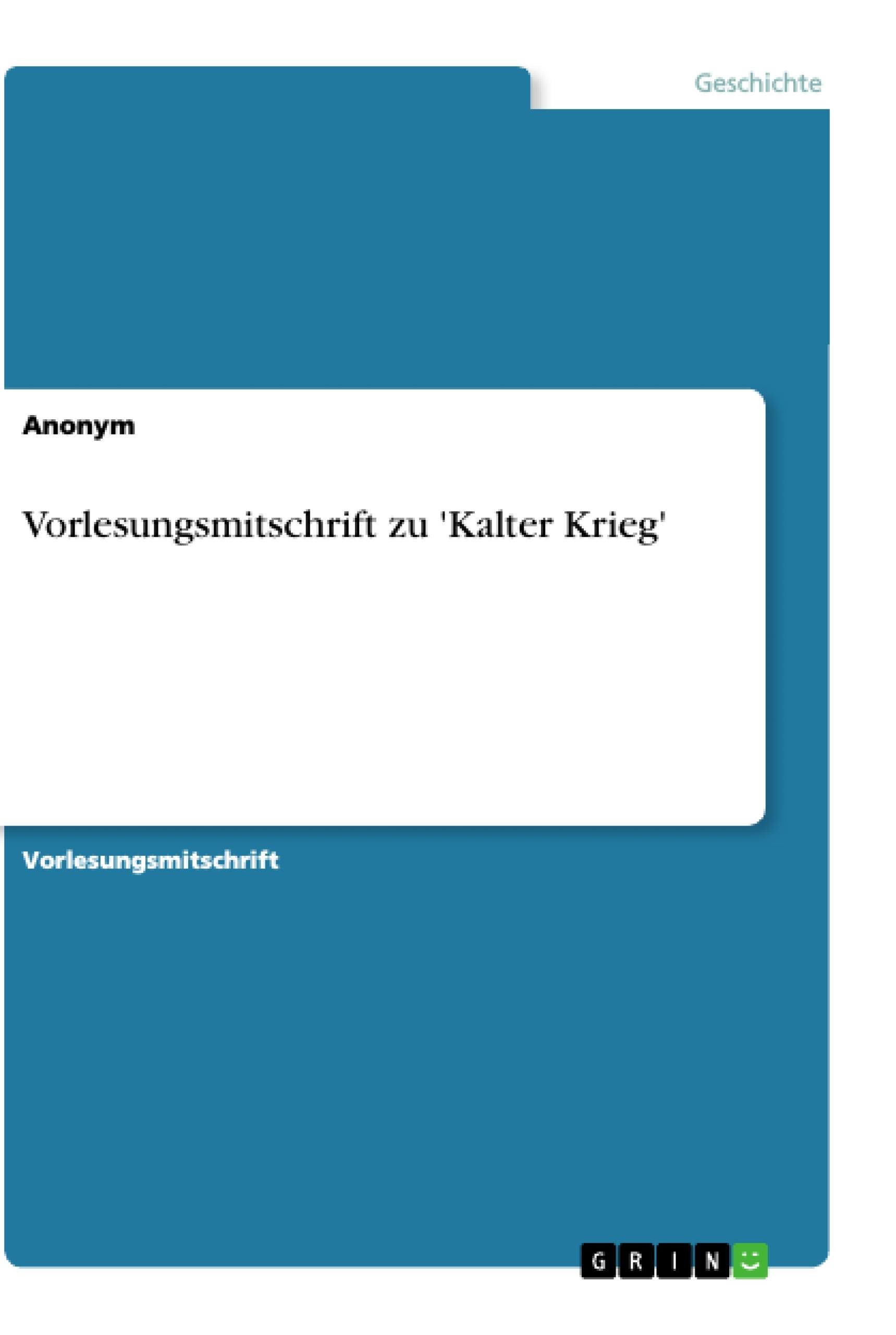 Vorlesungsmitschrift aus dem Jahr 2014 im Fachbereich Geschichte Europa - Deutschland - Nachkriegszeit, Kalter Krieg, , Sprache: Deutsch, Abstract: Vorlesungsmitschrift zum Thema 'Kalter Krieg'.Von Begriff, über die Beschreibung des Kalten Kriegs und dessen Charakteristik zu den...