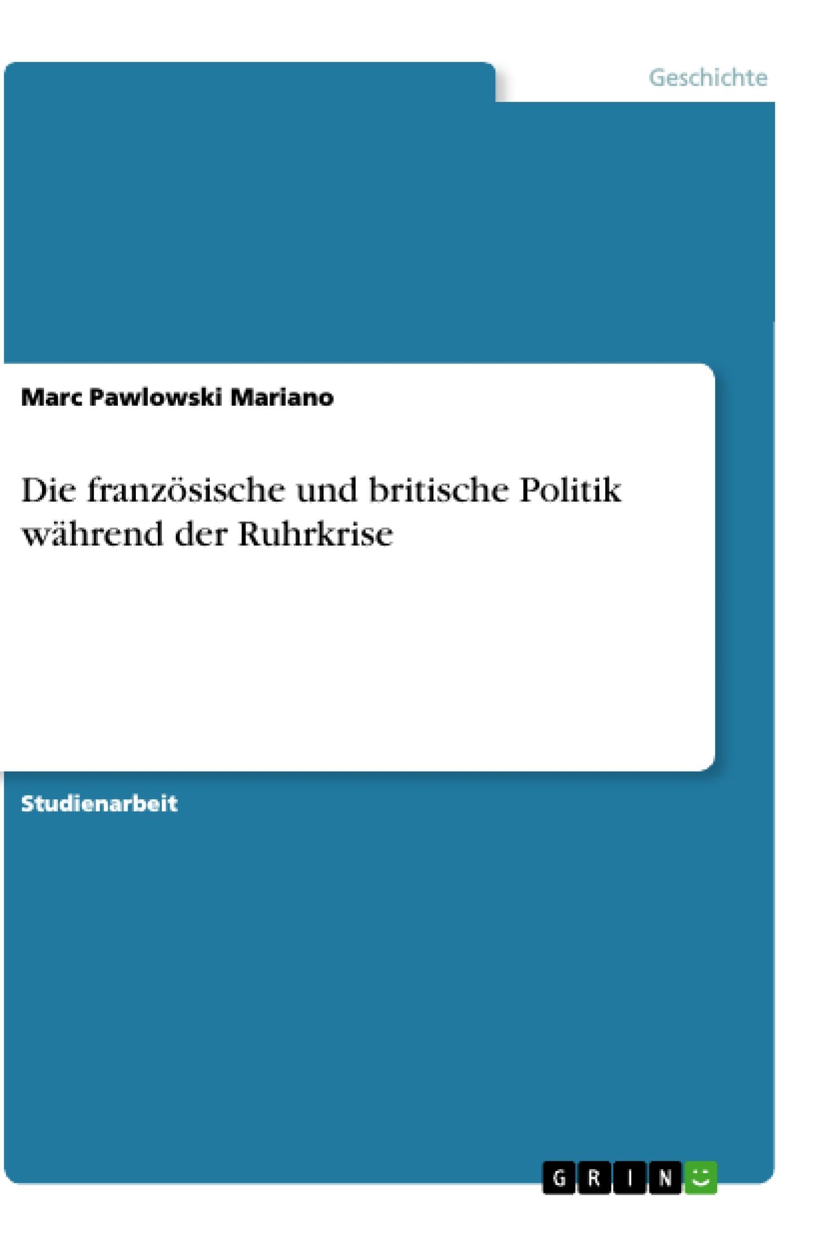 Die französische und britische Politik während der Ruhrkrise (německy)