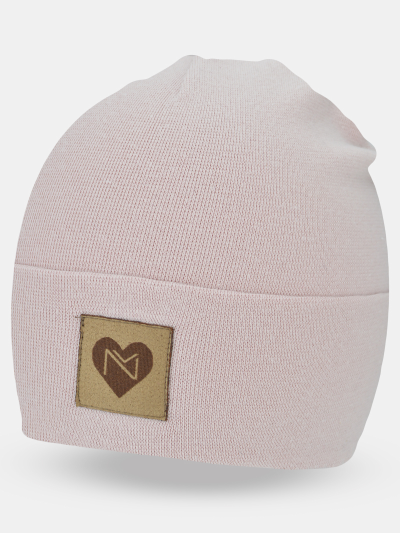 NOVITI CP058-G-02 Czapka bawełna wywijana podwójna serce pudrowy róż 48/50 cm