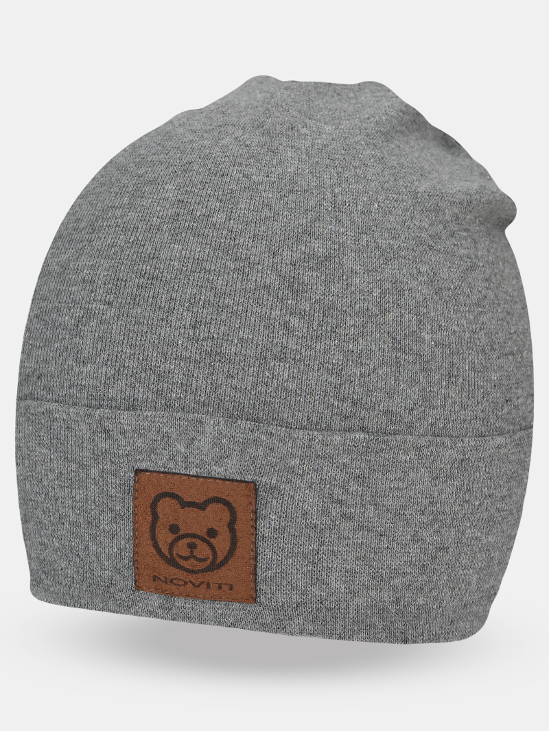 NOVITI CP059-B-03 Czapka bawełna wywijana podwójna miś ciemny szary 44/46 cm