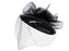Elegantný koktejlový fascinátor je vyrobený z modistických sieťok tvarovaných do kvetu a doplnený jemnými pierkami pre dokonalý vzhľad. Francúzsky závoj decentne zakrýva časť tváre, čo dodáva vášmu štýlu nádych tajomna a sofistikovanosti. Vďaka praktickému kovovému klipsu s drobnými zúbkami sa fascinátor ľahko a pevne pripevní do účesu, bez spôsobenia nepohodlia.