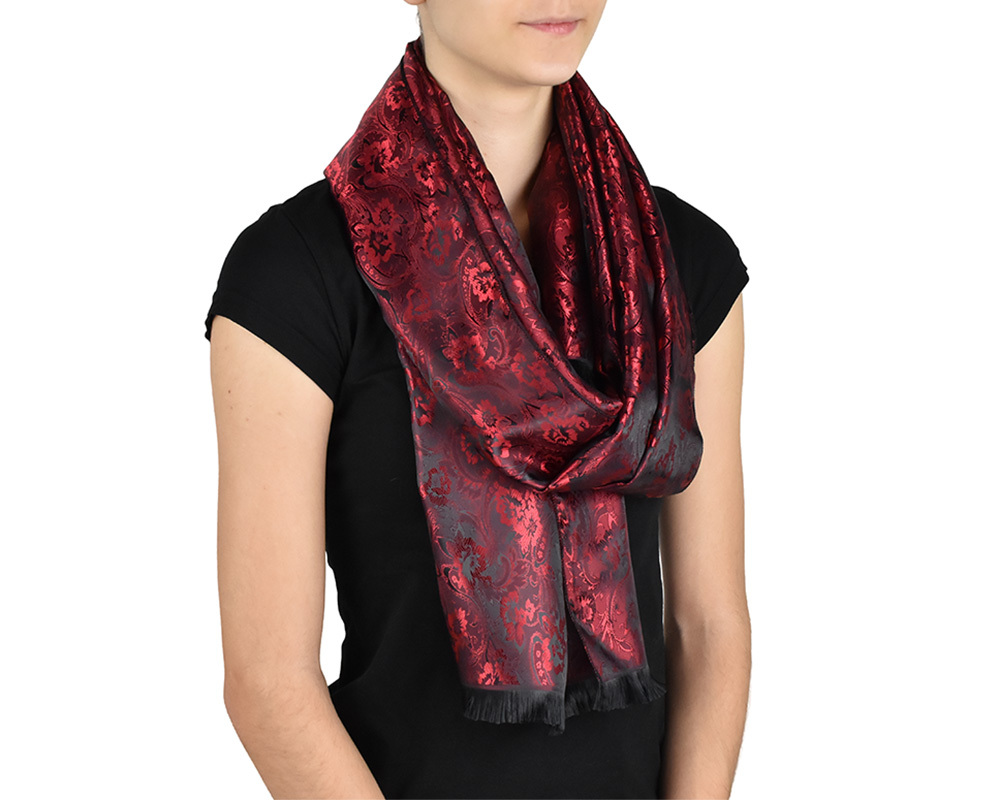 Šátek kašmírské hedvábí červeno-černý, květy