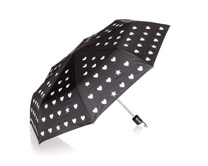 PRETTY UP Deštník měnící barvu 52 cm, černý se srdíčky