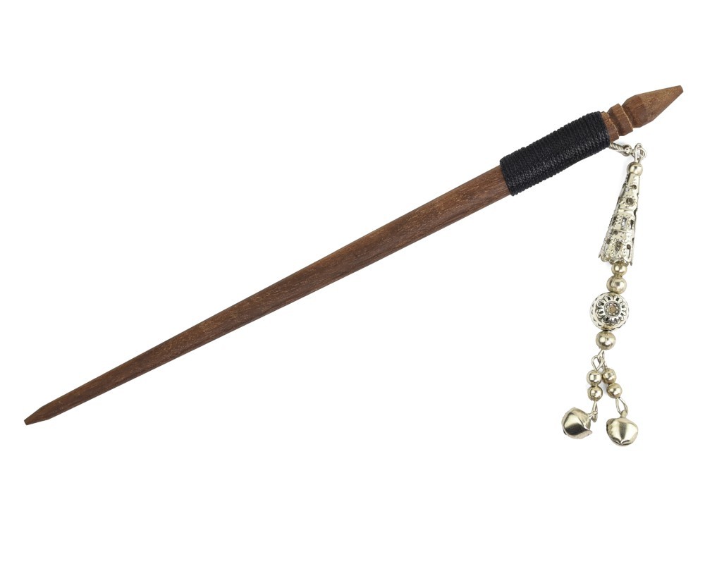 Dřevěná jehlice do vlasů, doplněná kovovou ozdobou s rolničkami a zdobenými korálky.Jedná se o rukodělný výrobek.Materiál: Dřevo, kovDélka jehlice: 18,5 cm prečítať celé