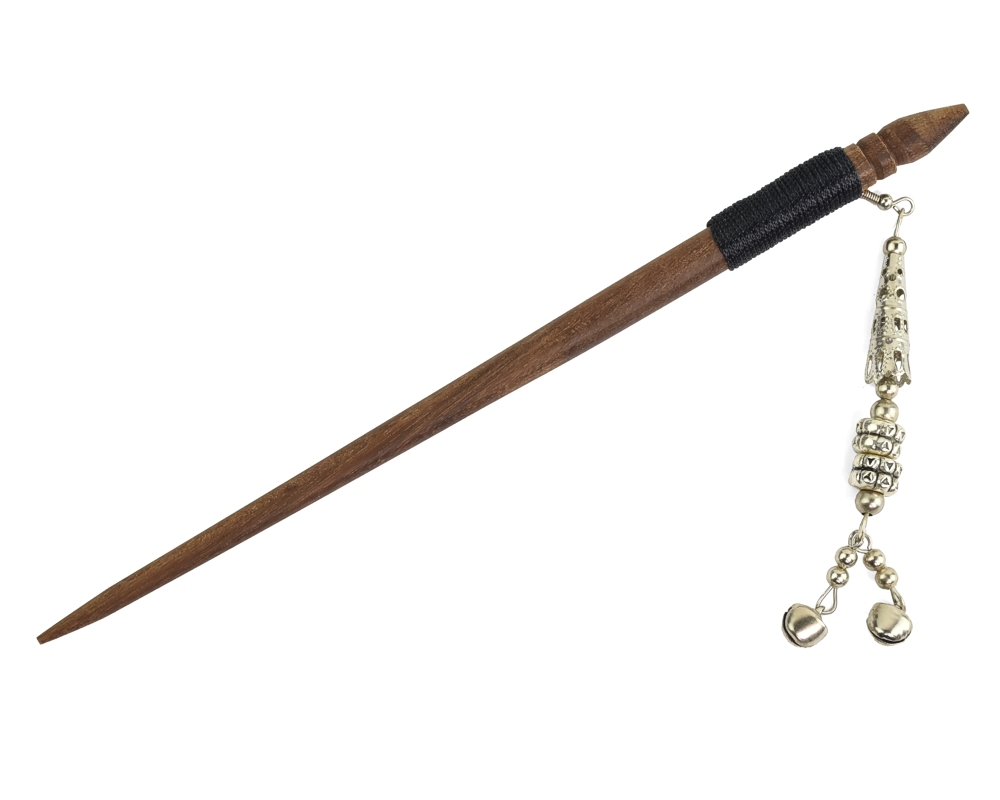 Dřevěná jehlice do vlasů, doplněná kovovou ozdobou s rolničkami a zdobenými korálky.Jedná se o rukodělný výrobek.Materiál: Dřevo, kovDélka jehlice: 18,5 cm prečítať celé