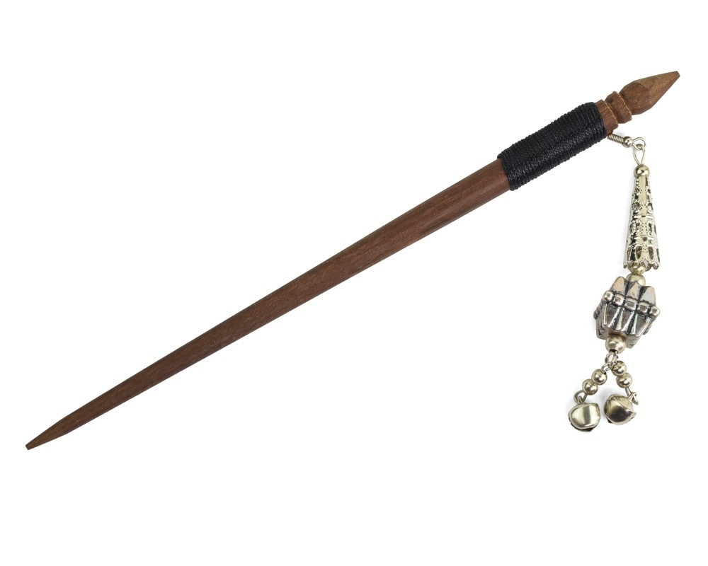 Dřevěná jehlice do vlasů, doplněná kovovou ozdobou s rolničkami a zdobenými korálky.Jedná se o rukodělný výrobek.Materiál: Dřevo, kovDélka jehlice: 18,5 cm prečítať celé