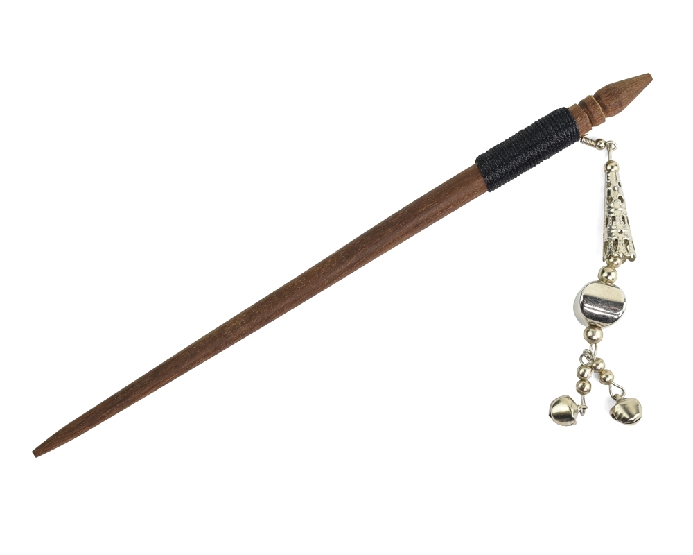 Dřevěná jehlice do vlasů, doplněná kovovou ozdobou s rolničkami a zdobenými korálky.Jedná se o rukodělný výrobek.Materiál: Dřevo, kovDélka jehlice: 18,5 cm prečítať celé