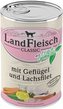 Konzerva Landfleisch s drůbežím masem, filetem z lososa a zeleninou. Kompletní krmivo pro dospělé psy všech plemen. Landfleisch konzervy jsou exkluzivně vyráběny z čerstvého masa a čerstvé zeleniny. Všechny suroviny pocházejí z přírody z německých farem. Obsahuje pouze čerstvé maso z jatečných...