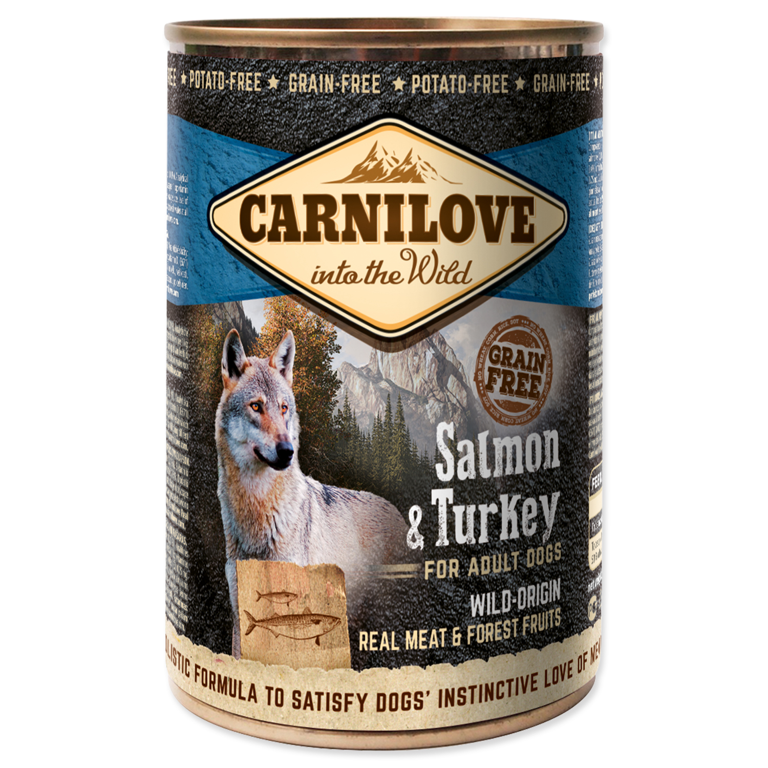 Složení: 47% maso z krocana, 20% maso z lososa, 2% borůvky, 2% brusinky, 2% maliny, 0,1% lososový olej, minerální látky.