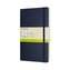Zápisník s měkkou, ve hřbetu šitou vazbou v kartonových deskách, obepnutý pružnou páskou proti samovolnému otevírání. Zápisník je vybaven pořadačem poznámek, který je vyroben z tkaniny a kartonu, textilní záložkou a letákem s historií MOLESKINE. Gramáž papíru 70 g/m2, neobsahuje kyseliny.