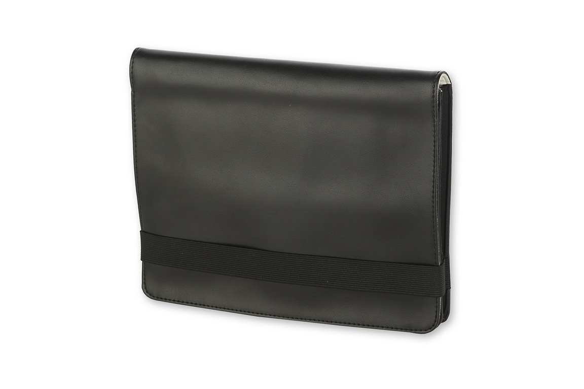 Pouzdro na notebook v imitaci drobně strukturované kůže, doplněné pružným materiálem po stranách. Inspirované designem zápisníků Moleskine, včetně pružné pásky. Uvnitř kontrastní béžová podšívka. Vhodné pro tablety velikosti 10. Rozměry 26 x 19,5 x 3 cm. prečítať celé